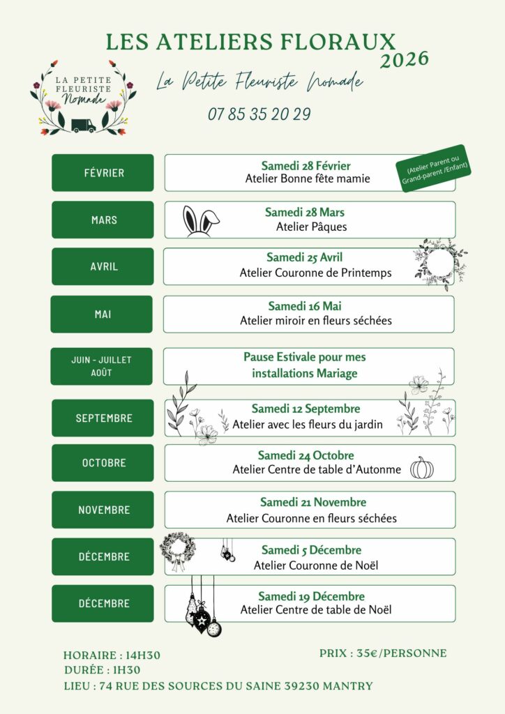 Venez passer un moment créatif, chaleureux et fleuri et repartez avec votre création.